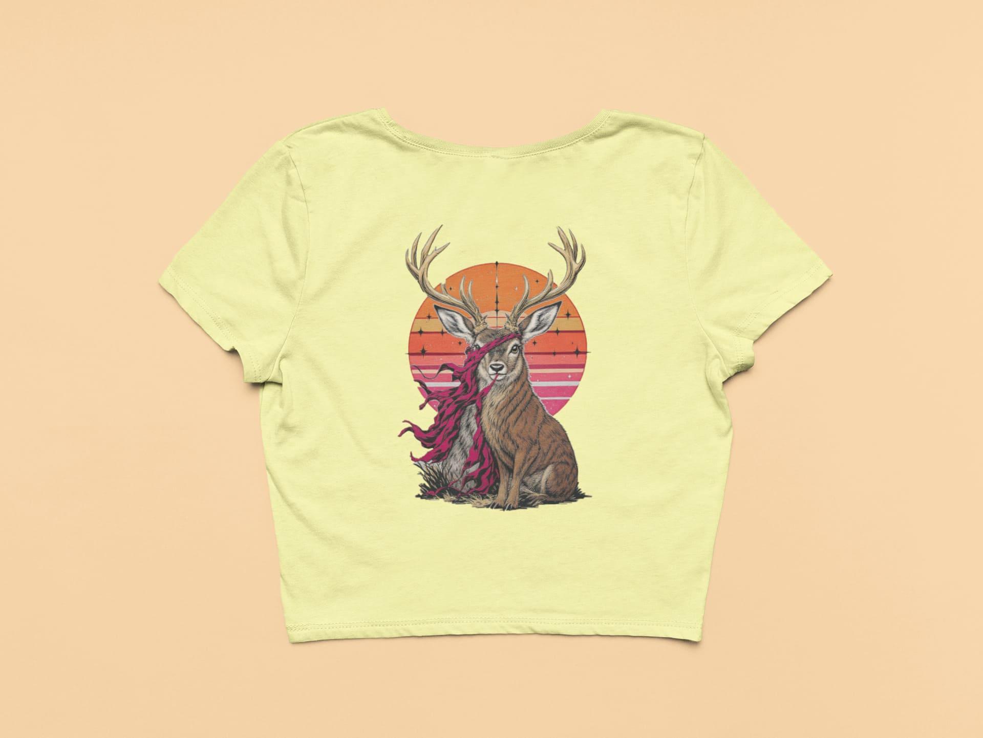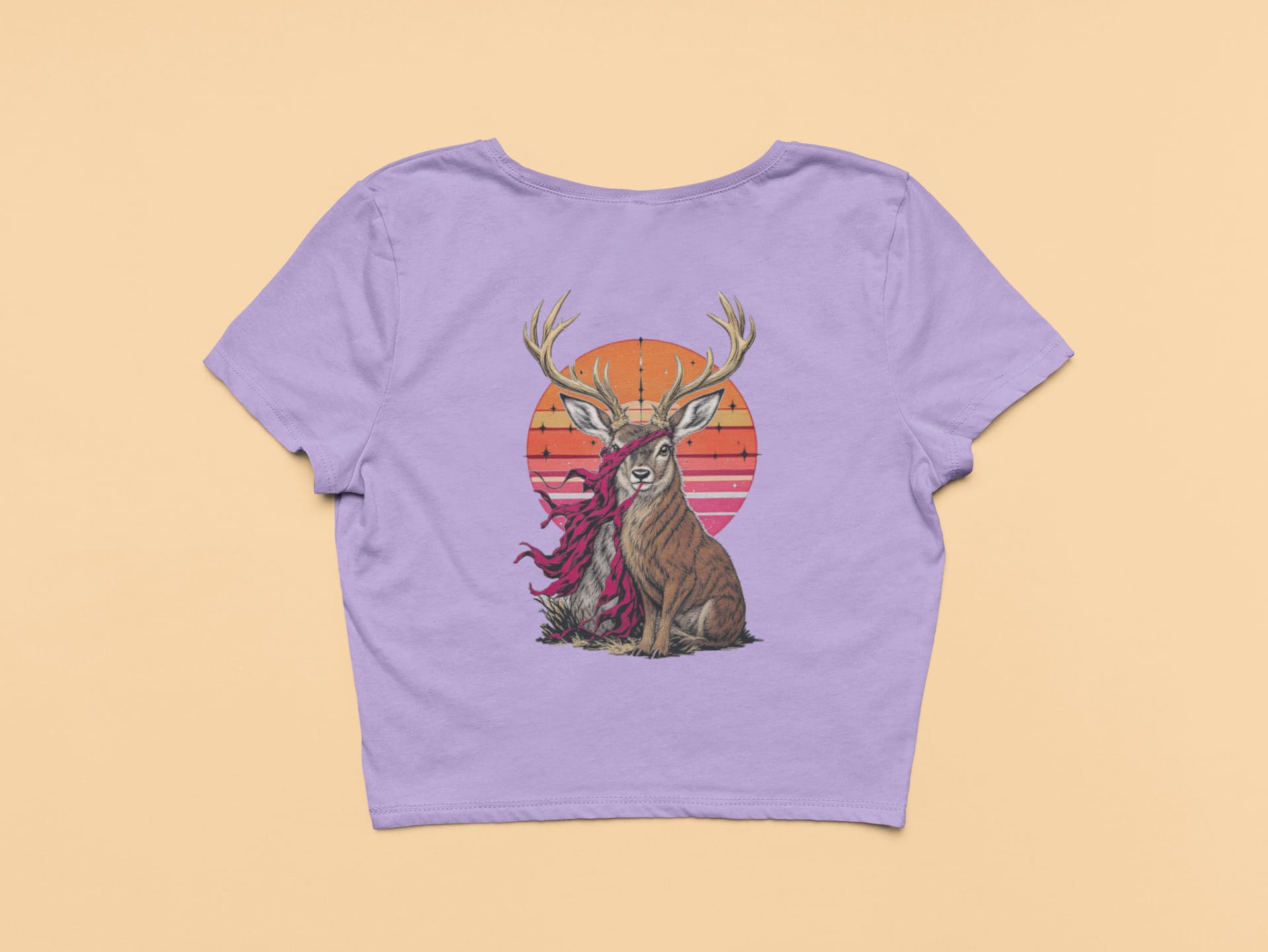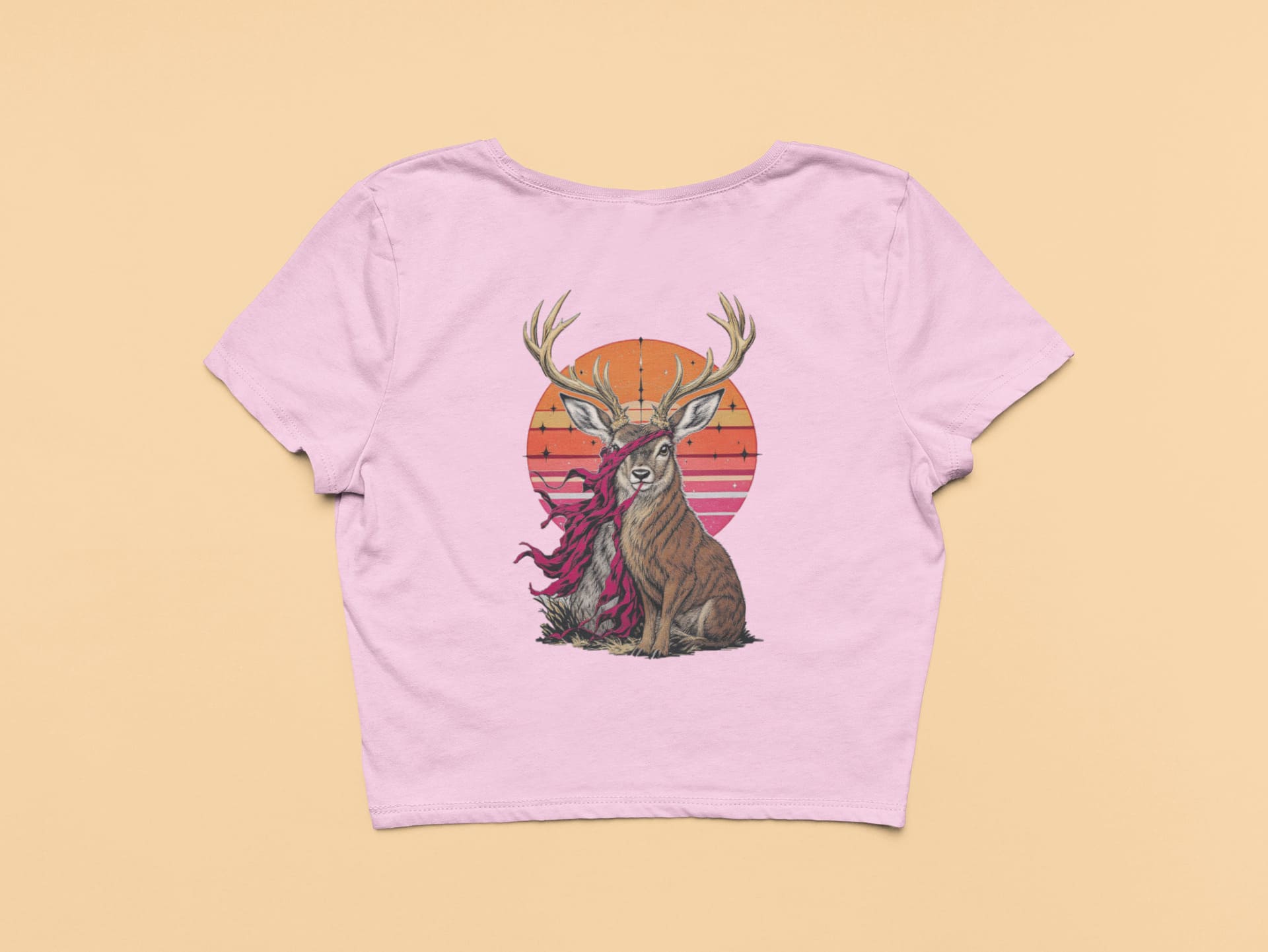Trendy & Stylish Women’s Crop Top – Deer in Sunset Forest Design