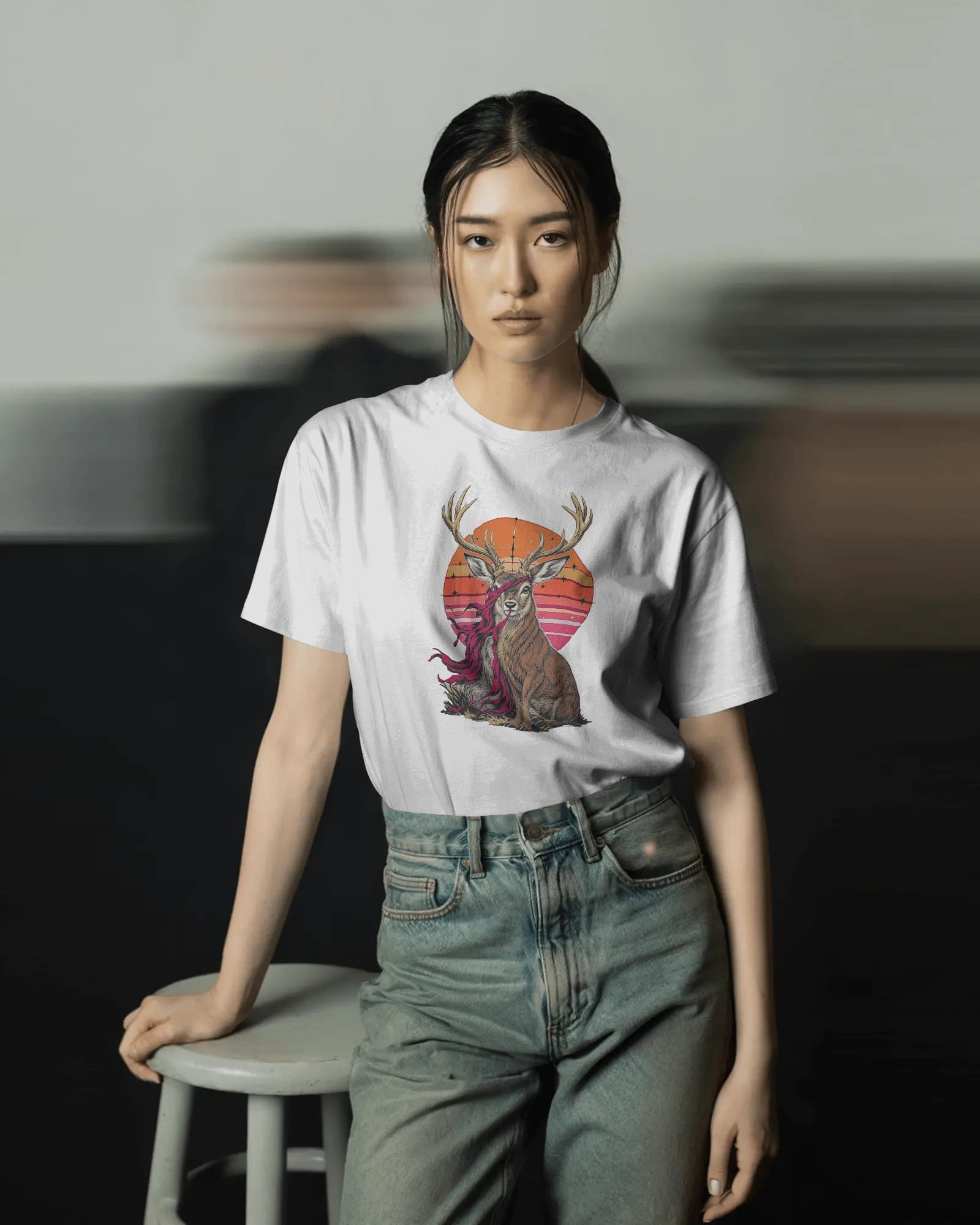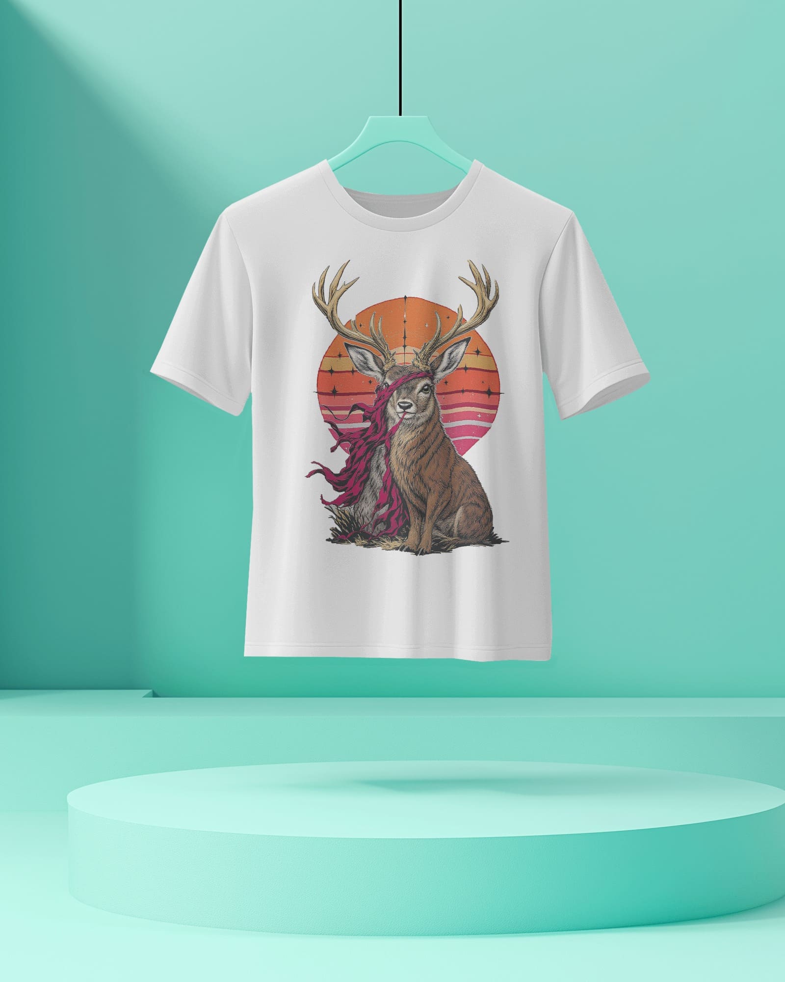 Step into the wild with the Deer T-Shirt, a perfect fusion of calmness and creativity. Featuring a stunning design of a deer set against the backdrop of the sun, this unisex round neck tee captures the beauty of nature in an artistic and minimal way. Made from premium cotton fabric, it delivers unmatched comfort, breathability, and long-lasting quality — ideal for nature lovers and streetwear enthusiasts alike.