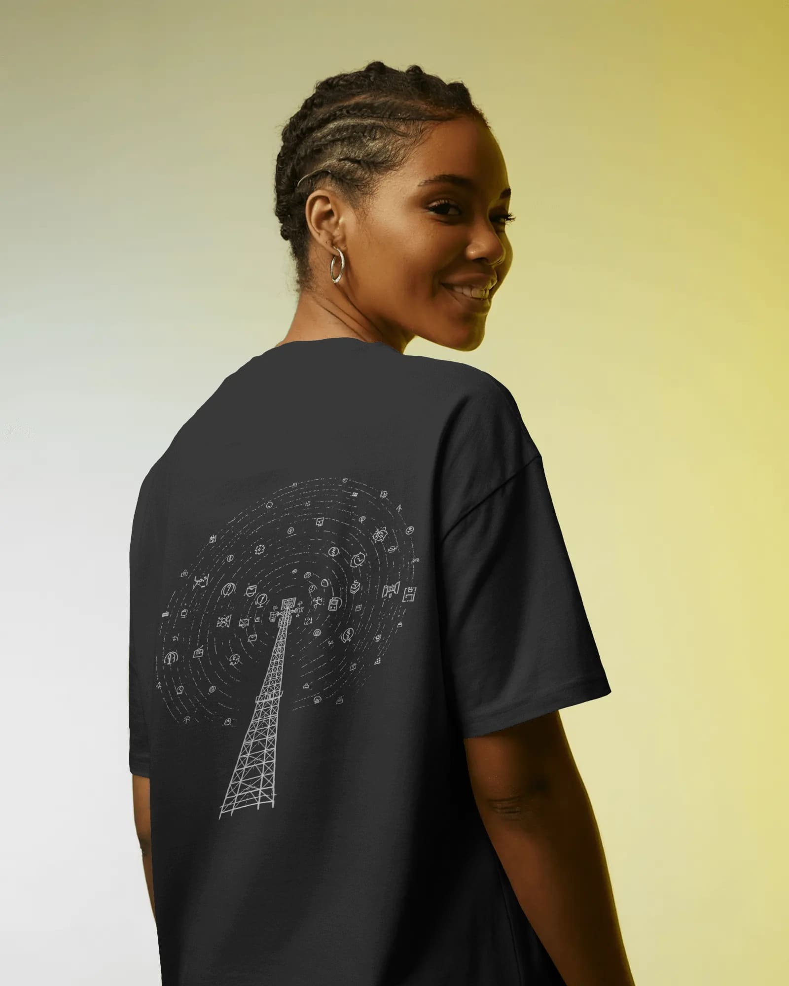 Oversized Street-Style T-Shirt – Unisex Cotton Tee with High Voltage Drip & Transmission Tower Design | 220 GSM Heavyweight