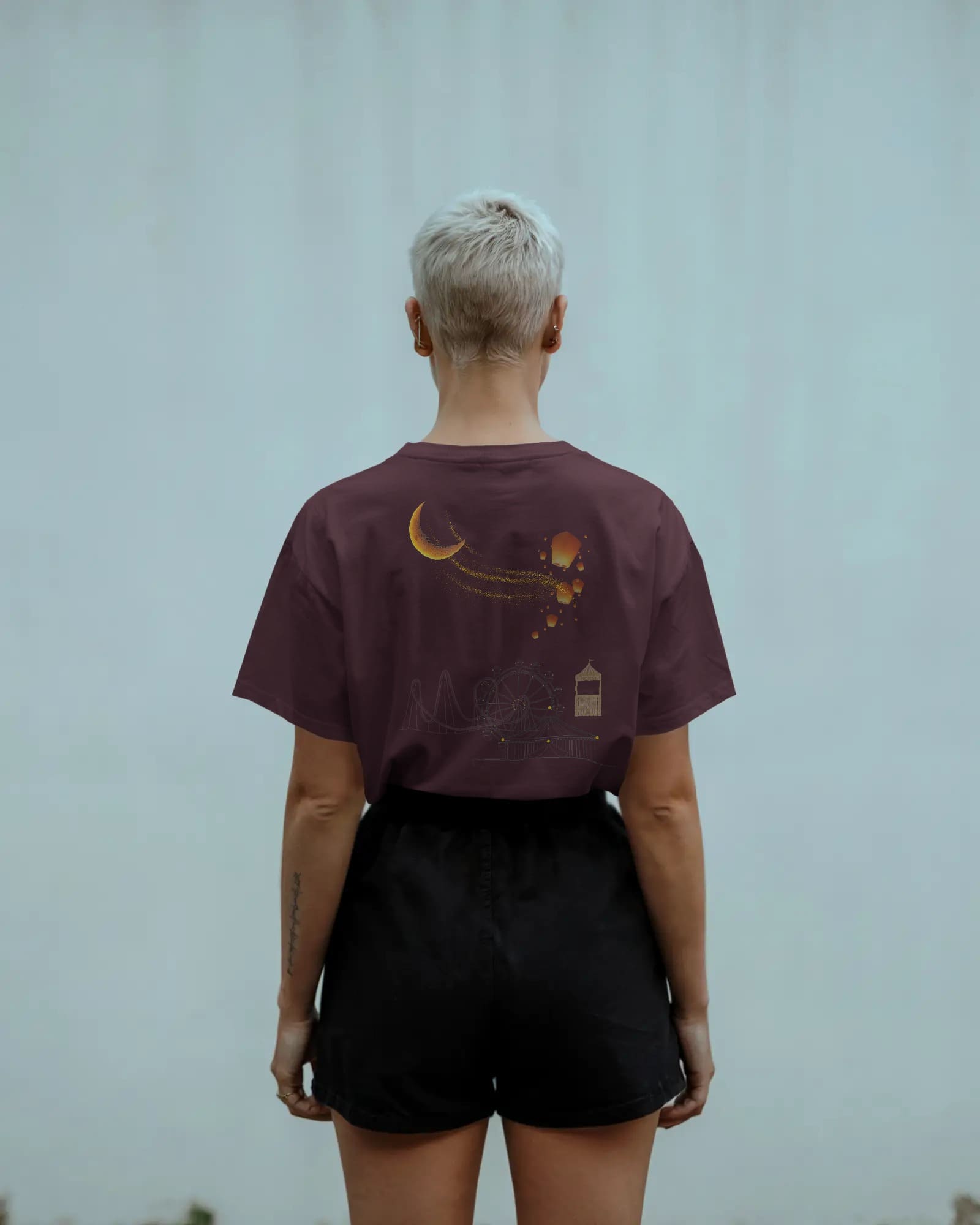 Step into a world of imagination with Lantern Dreams, an oversized t-shirt that blends comfort, style, and artistic expression. Featuring a captivating carnival-inspired lantern design on the back, this tee adds a touch of magic to your streetwear collection.