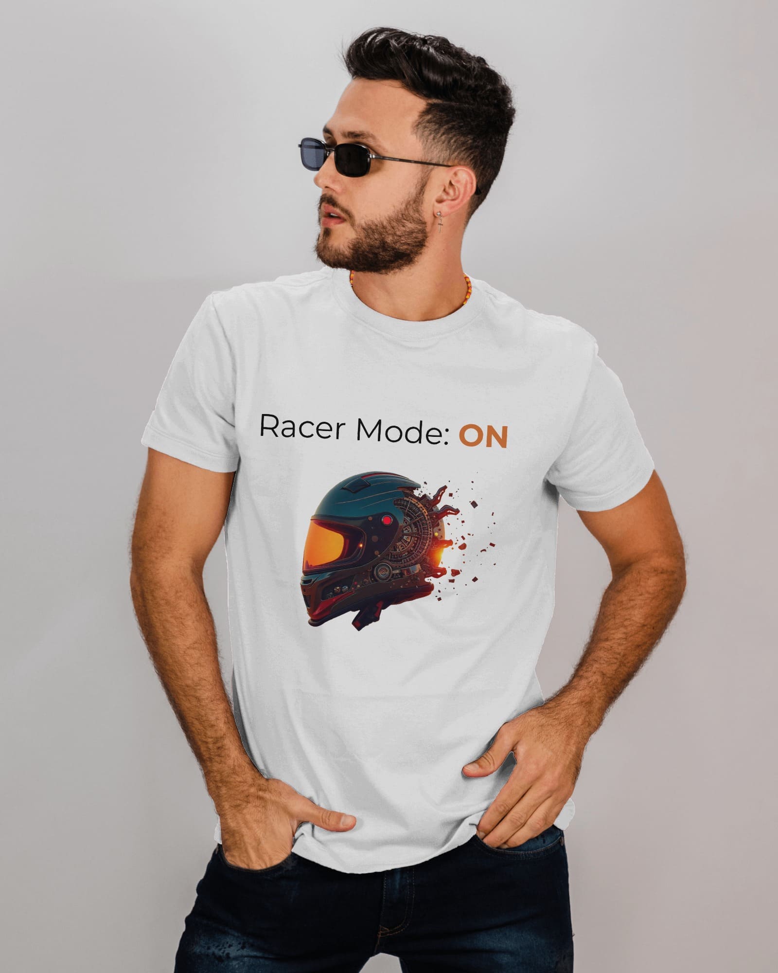 Fuel your adrenaline with the Race Mode ON t-shirt, featuring a bold racing helmet graphic on the front. Designed for speed lovers and street-style enthusiasts, this tee brings the thrill of the track to your everyday look.