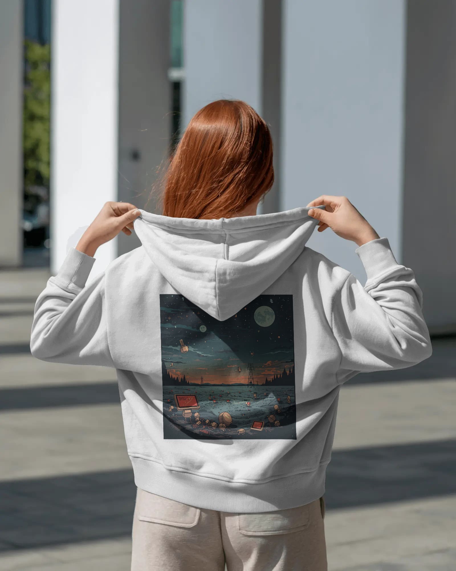 Crafted for dreamers, explorers, and those drawn to the unknown, this piece blends futuristic visuals with timeless streetwear comfort.