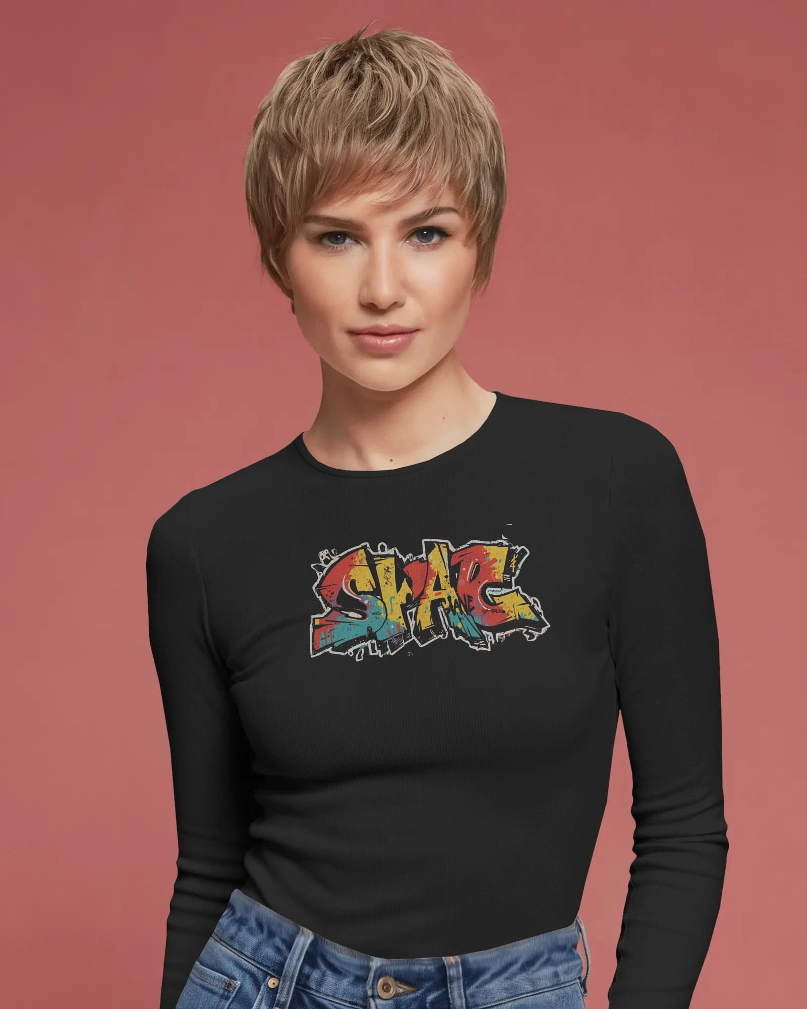 Swag – Unisex Full Sleeves Wall Graffiti Graphic T-Shirt