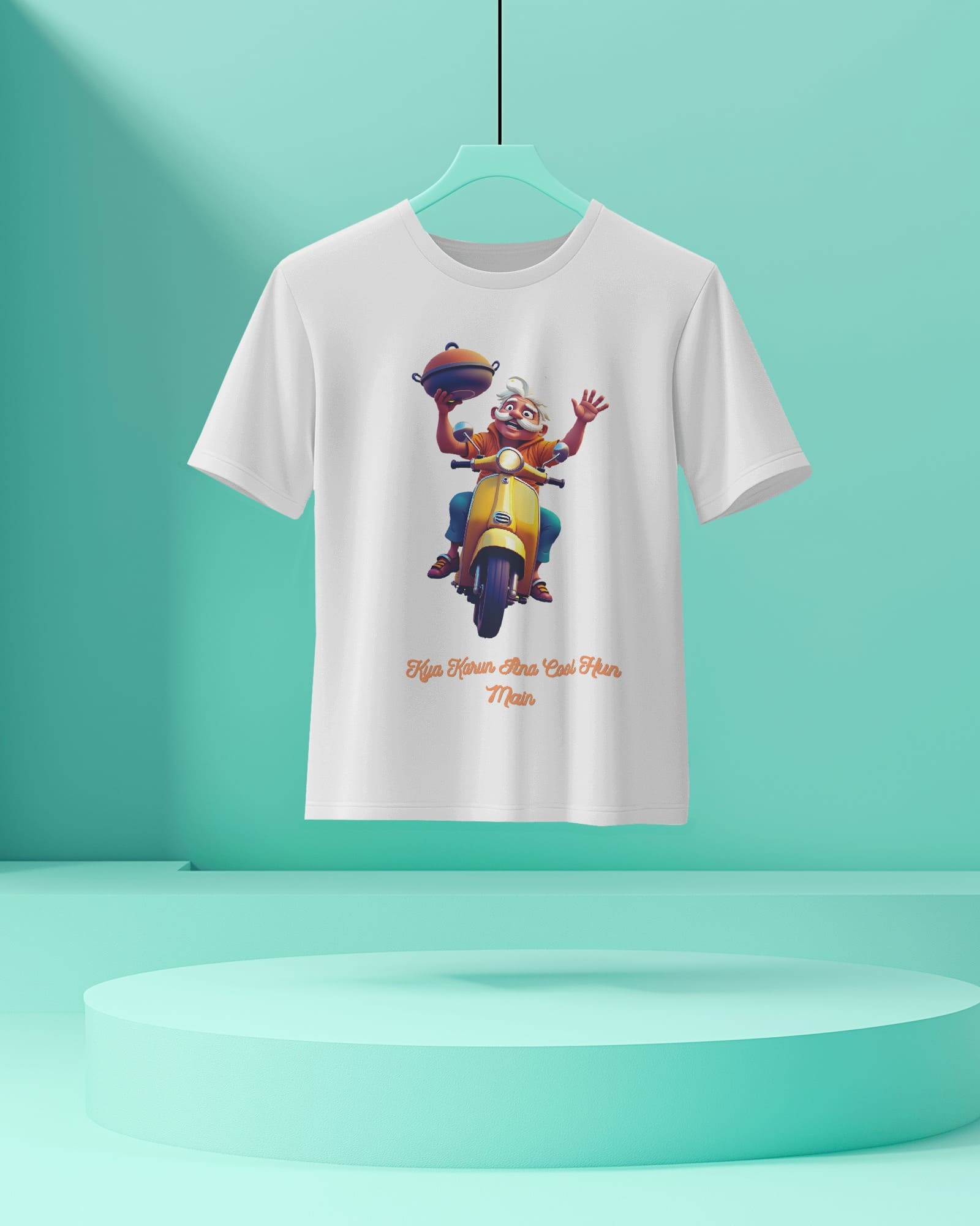 Turn heads wherever you go with this statement-making men’s t-shirt featuring a quirky design of a man riding a scooter with the text “Kya Karun Itna Cool Hoon Main.” A perfect mix of comfort, confidence, and casual streetwear style, this tee adds a playful edge to your everyday look.